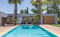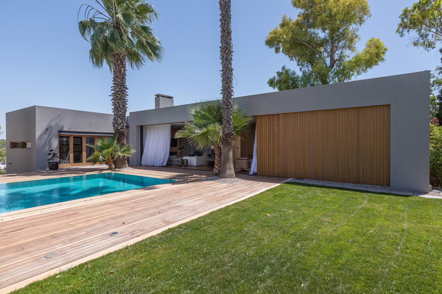 Designed as an autonomous yet deeply connected extension to an existing residence, the Pool House unfolds as a distilled study in spatial continuity. Its placement along the pool establishes a clear architectural axis, transforming the water surface into both a visual anchor and the social heart of the ensemble. The structure’s formal language, precise geometry, restrained materials, and an almost archetypal clarity, creates a calm, deliberate presence within the garden.