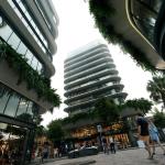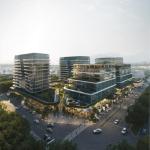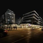 The program includes residential units, office spaces, hotel functions and retail areas organized within a porous block system that prioritizes environmental performance and spatial continuity.