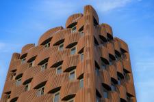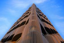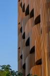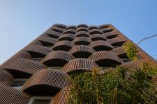 Nagpur, among India’s hottest cities, records summer temperatures of up to 48°C. Responding to this extreme climate, the building’s façade is conceived as a layered, climate-responsive skin. Semicircular open decks and planters sheathed with aluminum louvers alternate along the entire perimeter both horizontally and vertically. This dynamic envelope mitigates direct solar heat gain while introducing greenery around the building, creating shaded, cooler microclimates for the interior spaces.