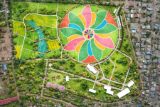 HKA | Hermann Kamté & Associates, based in Yaoundé, Cameroon, was shortlisted as a finalist in a restricted competition for the National Bahá'í House of Worship of the Democratic Republic of Congo, sited on a plateau overlooking the Congo River in Kinshasa. The program is complete: a nine-petal prayer hall at the centre, enclosed by sacred gardens, a protected community zone, residential accommodation, offices, and landscaped gardens extending to the valley floor. Not a single building but a full campus, conceived as a living institution, rooted in one of Africa's most densely inhabited territories.
