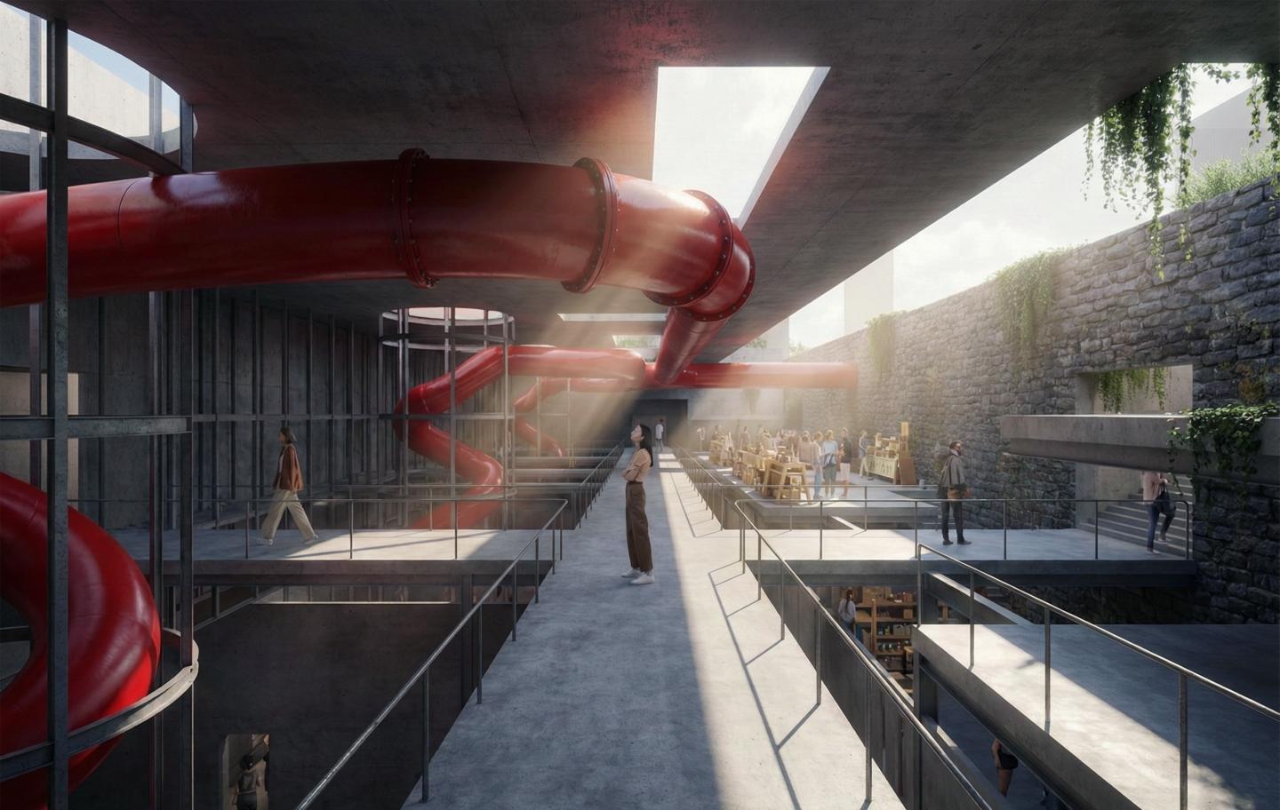 Without source-based separation, material recovery becomes technically limited and economically unviable. Underground pneumatic waste collection system transport pre-separated waste to the facility, where the process can be visually monitored by the public without interrupting circulation. The project integrates observation into everyday transit, positioning civic engagement as the first operational layer of the cycle.