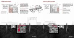 Only a limited portion of collected waste is transformed locally; this facility is not conceived as a centralized recycling plant, but as a civic interface. Repair workshops, repurposing ateliers, and secondary market allow materials to re-enter daily circulation while simultaneously embedding citizens within the cycle itself. Through these public functions, the community becomes an active participant in regeneration rather than a passive producer of waste. The secondary market closes the visible loop, reinforcing both the economic and social continuity of recovery.