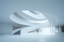 The design embraces low energy consumption and sustainable principles, adopting outward-sloping façades effectively to reduce direct solar exposure during summer. The lower sun angles allows light to enter through reflective fins that diffuse sunlight indoors – significantly improving natural daylight and reducing heating demand. The roof features a perforated aluminum panel system, creating a cooling effect in summer that the white reflective surface deflects solar radiation.