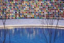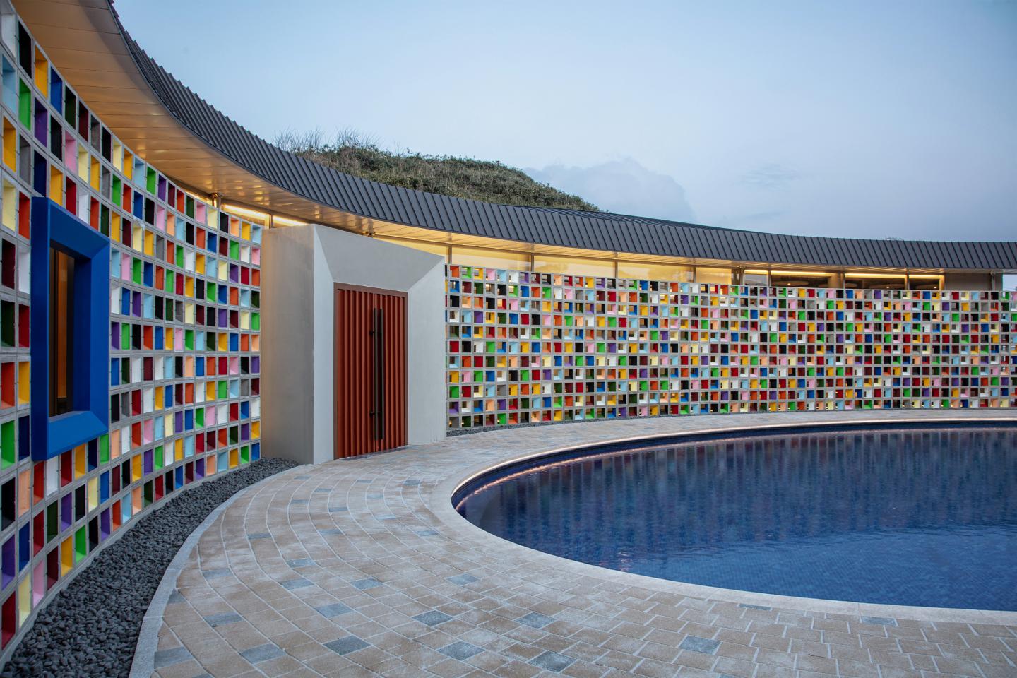 A core teaching of Buddhism is that all phenomena arise through interdependent relationships. This is symbolized by "Indra’s Net", a vast web of jewels reflecting one another, representing the interconnectedness of all beings. This concept is expressed architecturally through a long façade wall composed of multicolored blocks and voids, symbolizing diverse humanity while enveloping the temple spaces.