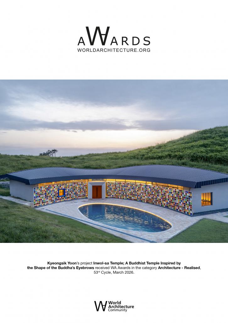 Inwol-sa Temple; A Buddhist Temple Inspired by the Shape of the Buddha’s Eyebrows by Kyeongsik Yoon in Korea, South won the WA Award Cycle 53. Please find below the WA Award poster for this project.