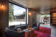 Entry is made through a narrow-glazed fissure in the otherwise solid stone main façade, leading into a long, open-plan interior articulated into three distinct yet fluid zones. Along the rear brick wall unfolds the kitchen and its storage spaces. At the center lies the dining area and fireplace, forming the human-centered heart of the home. Running parallel to the main façade, a more informal sitting area occupies the third zone. The dining element appears as a monolithic extension of the kitchen, occupying the preparation area before stretching lengthwise into the dining table itself. At one end, the pantry takes the form of a display cabinet, where raw ingredients are presented almost ceremonially, at the other, the space dissolves into the lounge and bar. The recurring presence of the deer throughout the interior—appearing as wall-mounted sculptures, paintings, and even as an almost lifelike taxidermy figure—seeks to draw the untamed essence of the surrounding landscape into the domestic interior.