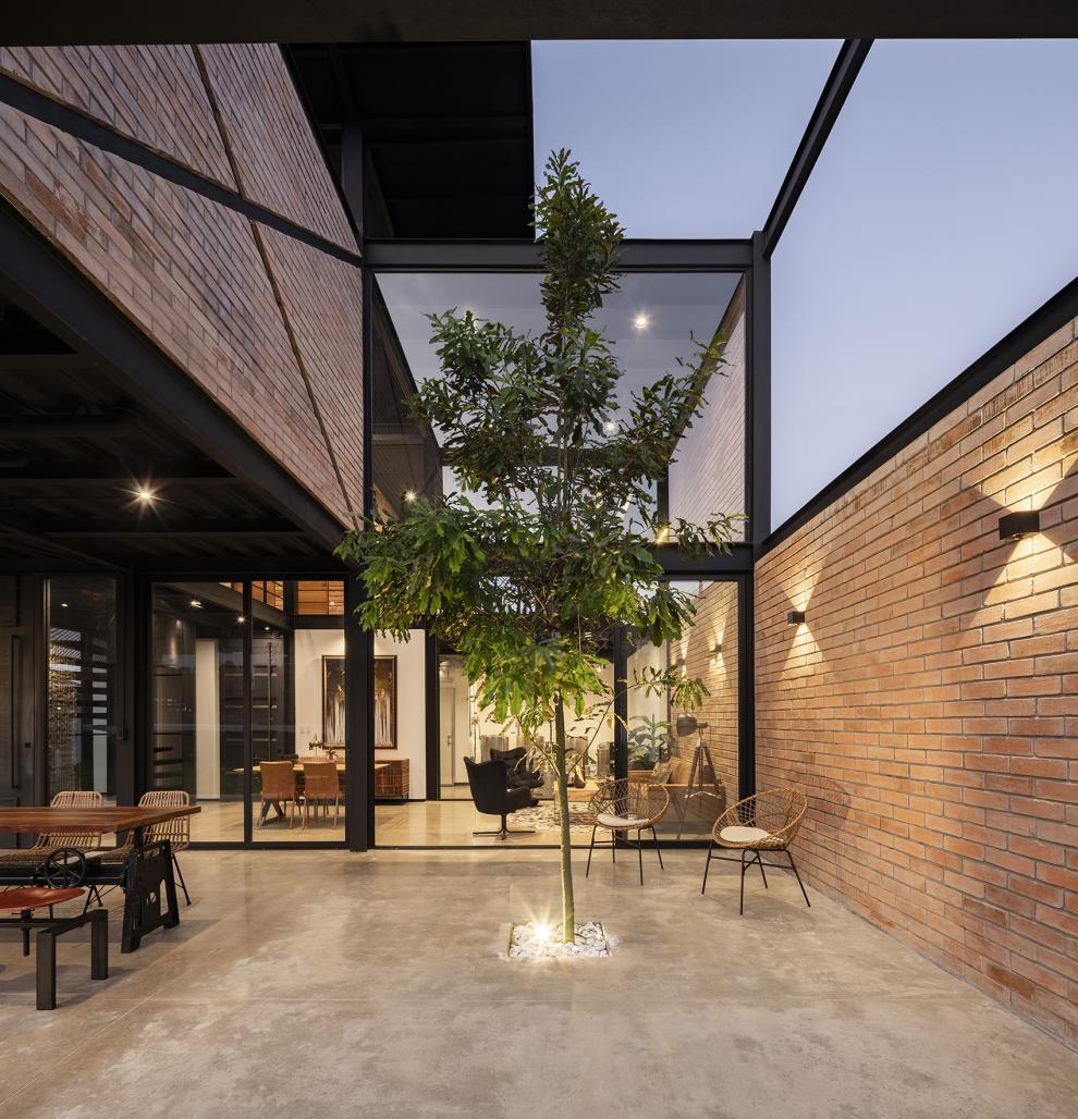 Located in a low-density suburban setting, Brew House, designed by Studio Alfa, is situated on a site that, despite its relative containment, enjoys a strong connection with the existing vegetation and a domestic scale that allows for close dialogue with its immediate context. A large-scale tree at the center of the lot serves as the articulating axis of the project, providing a hierarchical sense to the spatial layout and connecting the architecture visually and emotionally with the natural environment.