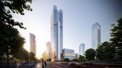 With a well-structured layout, the design establishes strong connectivity within plots through public spaces, linking them harmoniously with surrounding urban green spaces and cultural parks. This greatly enhances the area’s openness and interaction. The entrance plaza of the convention centre features a grand, open space that serves as a landmark venue for city events. A sunken plaza on the western plot is designed to integrate with the underground retail street and metro station, efficiently guiding pedestrian circulation while activating the commercial vibrancy.
