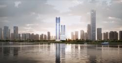 The western plot focuses on R&D office, with a 165.85m secondary tower positioned on the northern side, creating a staggered layout alongside the main tower. At the top of the tower, a sky atrium with high ceilings serves an open space for collaboration, enhancing flexibility for cross-level leasing and adaptive modifications. On the south, two versatile apartment buildings are strategically placed, complemented by a variety of commercial amenities. This well-integrated layout creates a high-quality community where residents can seamlessly experience living, leisure, and social engagement.