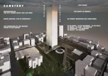 Historically, the tallest structures ever built—such as pyramids—were tombs. While modern cities have rendered death invisible, the Mertim project reintroduces death into the urban fabric by elevating it skyward. Vertical cemeteries serve both as burial grounds and monumental public spaces embedded within the everyday life of the city. In doing so, death becomes a central part of both architecture and collective memory.