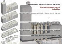 By preserving the columns of the old structure, I designed a structure in which curvilinear forms and plant tubes stand out, where the flooring is interrupted where the tubes come from. I also wanted to provide continuity of green space partially in the gaps in the tower. I wanted the tubes in the basement to jump to the tower with the elevator tube.