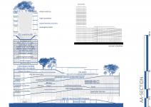 To articulate this narrative, three massive soil volumes are embedded into the structure—two at the base and one rising through the tower. From these soils, trees grow upward, suggesting that memory and nature are not confined to the ground but can rise and renew above the city.