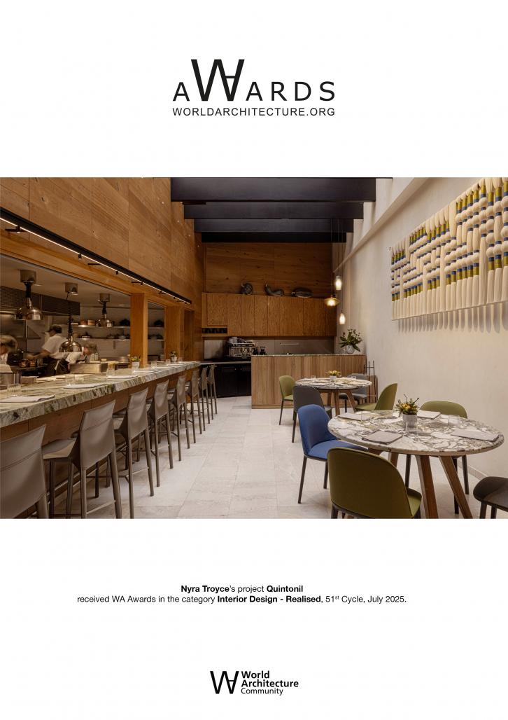 Quintonil by Nyra Troyce in Mexico won the WA Award Cycle 51. Please find below the WA Award poster for this project.