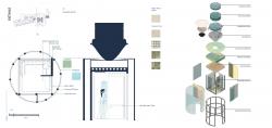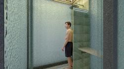 As climate change reshapes our cities, the Hudson River emerges not just as a geographical edge but as a generative force; its recycled waters reimagined for shared ritual and engagement. This project occupies Brookfield Place’s Winter Garden and circulation spaces, transforming them into an urban ritual landscape where the river’s water flows visibly through a monumental L-shaped pipe. Here, intimate, often isolated acts—bathing, steaming, cleansing, and the simple meditative pause of drinking coffee—are placed into the public realm to dissolve spatial boundaries. Eight single-person showering units invite moments of solitary care within a shared setting. A central café with 15–20 seats anchors gentle social gathering. Six existing Winter Garden trees are encircled by newly designed benches, each holding 4–8 people, offering pockets of rest beneath filtered steam and light. The steam zones act as thresholds, using recycled water to humidify and nourish the trees while quietly revealing the water cycle’s journey and fragility. Through these acts, the design cultivates a new typology of urban intimacy where solitude and collectivity coalesce. Water becomes a quiet choreographer of social rhythm and sensory experience, a connective tissue that transforms personal care into communal performance. No longer passive, water is the medium through which public space is redefined, and private ritual becomes collective belonging—reminding the city that care for self, community, and environment flow together as one.