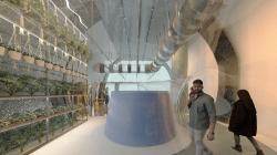 3. Stage Three — Ecological Return: The shower water is collected as blackwater and passes through a final biofiltration stage that uses planted wetland beds integrated into the circulation spaces. The treated water then irrigates the Winter Garden’s six existing trees and surrounding planting beds.