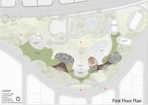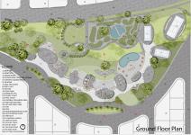 This sports & community center layout generates the maximum garden area on the northern side, planned with multiple outdoor areas for golfing, walking, running, outdoor sports & an open amphitheater for larger gatherings.