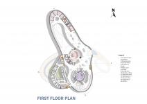The building spans 11,800 m² across two floors on a 60,000 m² site. It features exhibition spaces, an inverted dome with a stargazing platform, a planetarium, immersive rooms, a telescope zone, cafes, seating areas, and a small research/admin section. Designed with a lightweight space truss system, it meets AlUla’s strict environmental standards while minimizing ecological impact.