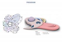 At the heart of the building lies an inverted dome where visitors ascend an elliptical ramp—a path echoing planetary orbits—toward a stargazing platform that suspends them between earth and infinity. Inside, exhibitions unravel the universe’s mysteries, while immersive rooms simulate space itself: the metallic scent of asteroids, the eerie silence of vacuum, and the glow of distant nebulae. A sloped skylight frames AlGharameel’s rocks by day, transforming at night into a window to the galaxy. The planetarium floats like a captured star, its curved screen plunging guests into cosmic depths as a radial oculus-skylight around the sphere creates a daily eclipse display—partial eclipses in morning and afternoon light, building to a perfect total eclipse at noon when the planetarium's shadow aligns completely within the ring of light.