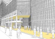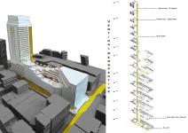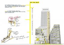 While the verticality is retained, it is now accompanied by a vertical urban route, inviting public interaction and experience.