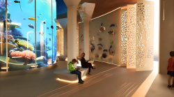 The design takes its inspiration from the natural rhythms of the sea — like waves, tides, and currents. These elements are reflected throughout the project in the forms, materials, and atmosphere of the space. The goal was to make visitors feel like they’re truly immersed in an underwater world, whether they’re walking through an aquarium tunnel, dining in a restaurant inspired by the deep sea, or exploring interactive exhibits.