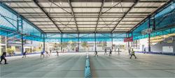 The renovation of the sports court and swimming pool at UNIS Hanoi is defined by its luminous new façade, composed of translucent polycarbonate sheets. This innovative material diffuses natural light while ensuring privacy and reducing glare, creating a bright, welcoming atmosphere that enhances the overall user experience. The polycarbonate’s lightweight, durable nature supports energy efficiency by improving thermal insulation and protecting against external weather conditions.
