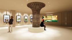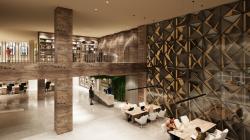 - Marble flooring in library areas; carpet flooring in documentary/cinema area for sound absorption