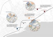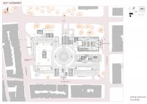 The base of the building is stripped down to its structural skeleton. Freed from walls and facades, it is transformed into a public platform. New lightweight structures inserted into this framework host modular units that change seasonally. These units support various programs—from cultural events and social aid to urban gardening and production spaces.