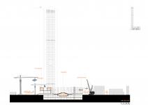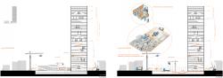 The base of the building is stripped down to its structural system; while columns and floor slabs are preserved, facade walls are removed. This open structure is equipped with lightweight steel modules that change according to seasonal and temporal needs.