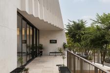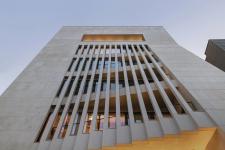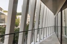 A stair carved into the slope leads up to a terrace that floats above the street. This gesture creates a space to pause, meet, or pass through, blurring the edge between city and building. It turns the ground into a shared platform for everyday encounters.