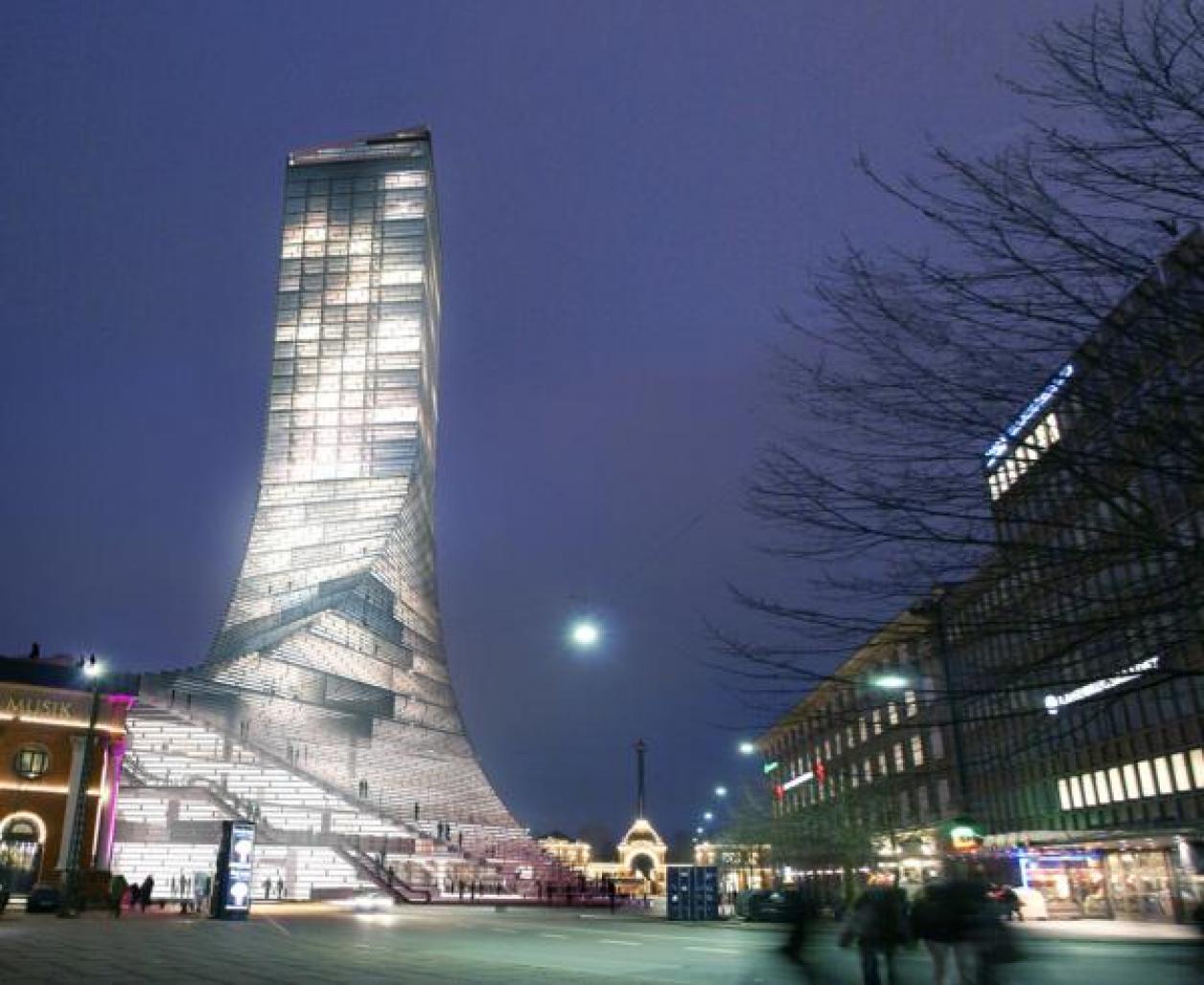 We propose a building with a starting point in the historical Copenhagen tower which is made up of two basic principles: a base that relates to the urban space and life unfolding near the building, and a slim steeple that reaches towards the sky and becomes part of the Copenhagen Skyline. As such, our design of the Scala tower grows out of the context with a starting point in the volumes and cornice heights of the neighbouring buildings. From the surrounding city space, the house rises towards the sky.