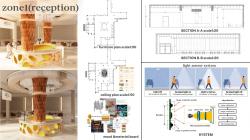 Systems: An interactive lighting system used in the reception desk creates interaction between the space and its users. Heating, ventilation, and air conditioning systems will be designed to ensure stable and comfortable temperatures. Sound management will be achieved using sound-insulating ceiling panels.
