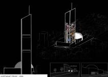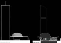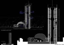 The skyscraper functions like an energy system: the tower produces and channels energy down to the base, where life is sustained.