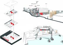 The project's primary design approach is shaped by the intention to preserve the historical remains located at the ground level and to introduce a new architectural layer to the urban fabric with minimal physical intervention to these existing strata. In line with this principle, the structure is conceived with a lightweight yet spatially powerful configuration, minimizing its contact with the ground.