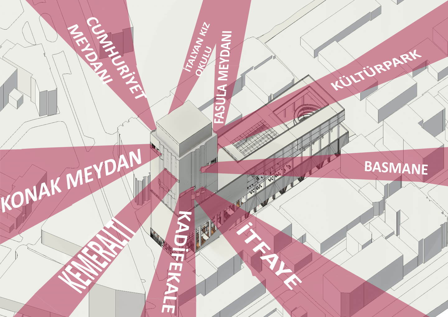 The loss or fading of a place’s historical and cultural significance leads to memory erosion and a breakdown of spatial identity. This phenomenon is known as urban amnesia. In the city, many spaces have already been forgotten or are on the verge of being lost. By identifying these areas, the project frames a series of vistas opening from the Hilton, revealing the concept of memory.