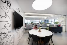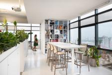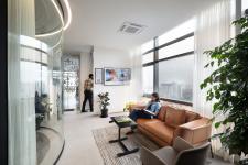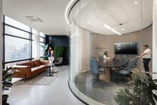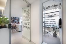 The studio is envisioned as a calm dynamic workspace, where every design move is deeply rooted in intuition and intention. Anchored by a unique capsule-shaped conference room near the entrance, the space gently orchestrates transition between the formal and informal zones, setting a collaborative tone from the outset. The south-facing area is intentionally reserved for interactive functions like the material library and meeting rooms to harness daylight while protecting focused workspaces from glare and heat. Tucked away behind the central meeting room, a secluded breakout area offers a quiet, comfortable retreat. The open office is carefully balanced and structured to support concentration, yet open enough to encourage spontaneous dialogue. Zoning subtly defines areas for deep work and shared energy. This area enjoys abundant natural light throughout the day and transitions to soft, indirect illumination by evening. A hybrid cooling system paired with ceiling fans enhances thermal comfort and energy efficiency. The design reflects a holistic approach, which is responsive, restrained and deeply human. It is not just about how we work, but how we feel while working.