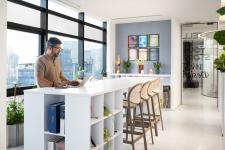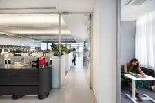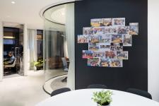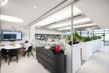 natural mosaic flooring, forbo carpet, customised light fittings in open office, acoustical wall paper are some of the products that enhance the aesthetics coupled with functionality of the space