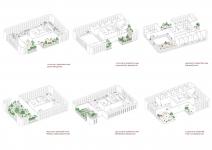 It is aimed to redesign and transform the Mertim skyscraper and its base section, one of the first skyscrapers in Türkiye, designed by Cengiz Bektaş in the Mersin province in the Mediterranean Region of Türkiye and currently in an idle state. While designing this re-transformation, it was necessary to add the metropolitan program..After the earthquake, the dense urbanization and lack of green areas in the city center, along with the population migrating to the city, make it difficult to access both physical and psychological healing opportunities.A public green area was designed on the ground floor to meet this;it was aimed to be a starting point where the city breathes and socializes.The rigid and static formula of the mass was softened with the holes opened to the courtyard and transformed into thematic healing gardens rising towards the tower floors.With different themes such as different experience gardens and resting areas on each floor,nature-integrated therapy, both group and individual session opportunities are offered.By being surrounded by physiotherapy and hydrotherapy units receiving daylight, green areas and indoor gardens, the physical treatment process turns into a peaceful nature experience.The project aims to replace the green that is missing in the city performance with a structural solution,