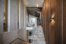 As the spatial journey continues, the experience evolves into a warm and inviting environment enriched with carefully considered details. Views from different points within the house consistently reference quarry-like forms. The pool area reinforces this concept, presenting itself as a quarry that has been flooded, integrating water as an essential element within the architectural composition.