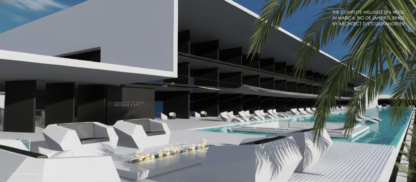 In 2014–2015, Svetozar Andreev’s architectural studio (Hotei-Russia) developed the design for THE COMPLETE Wellness Spa Hotel, a major spa resort in Maricá — a new, rapidly growing attraction point in Rio de Janeiro, Brazil.