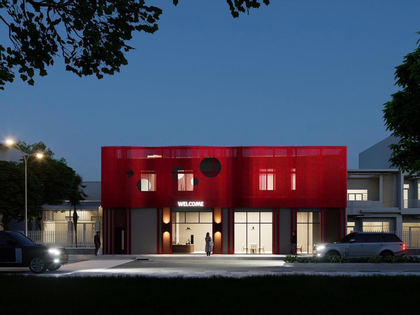 The Crimson Veil is more than a house; it is a prototype for modern living in Vietnam’s developing urban/rural fringe. It demonstrates that climate adaptation does not require a sacrifice of aesthetic boldness. By wrapping the functional core in a breathable, protective "armor" of red steel, I.O.Y Construction has created a building that is physically cool but visually hot.
