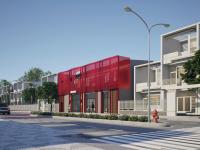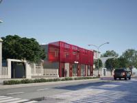 Instead of retreating behind heavy masonry walls, the design strategy embraces transparency and lightness. The immediate visual impact of the building is its striking color palette—a deep, visceral crimson that wraps the upper volume. This is not a shy building. In a context often washed in beige and grey, The Crimson Veil stands as an urban marker, a point of orientation that asserts its presence through color, reminiscent of the bold chromatic applications found in the works of Bernard Tschumi.