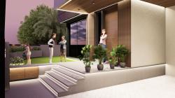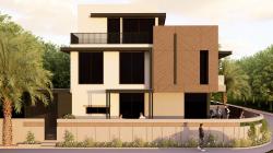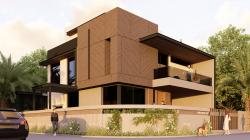 Key Features: Sculptural cube volume, floating form, open living spaces, integrated terraces, shaded transition zones