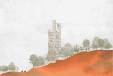 Spatially, the tower is conceived as an introverted observation refuge. Throughout its levels, selectively placed openings in the façade frame specific views of the natural landscape of the hills and the built landscape of Bogotá, encouraging a slow and contemplative experience. The ascent unfolds through a circuit of exterior staircases that gradually open toward the surroundings before leading into interior resting spaces, generating a continuous sequence between exterior and interior.
