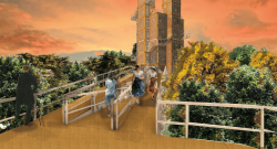 Quye Amarú, a name derived from the Muisca Indigenous language meaning Wooden Serpent, is a lookout tower and suspension bridge located in the Eastern Hills of Bogotá. The project is conceived as a landmark emerging from the lush forest and as a tribute to the city, establishing a symbolic connection between the natural landscape, ancestral memory, and the contemporary urban environment. Its form and circulation reinterpret the figure of the serpent as an element of connection, movement, and transformation within the territory.