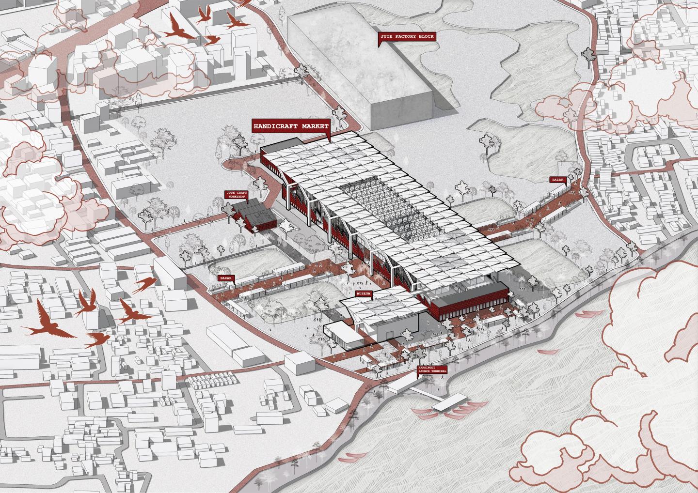 This project proposes the transformation of Alijan Jute Mill into a worker-centered, river-resilient, and economically productive heritage district, where industry, culture, housing, and landscape are re-integrated through the principles of New Contextualism. Rather than treating context as background, the project reads it as a layered field of relationships- ecological, social, economic, political, and cultural- from which design decisions emerge.