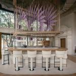 The dining room revolves around an open kitchen, a chef’s counter, and a central cocktail bar, where front and back-of-house operate as one stage. Diners are invited into the culinary process, witnessing preparation, plating, and service unfold with Michelin-style precision.