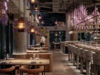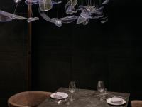 For a more intimate experience, a mezzanine and private dining room elevate the flower motif. Velvet, walnut, and soft fabrics soften the edges, while mirrored ceilings and suspended petals create a starlit canopy. At Aster, every detail—from material to light—guides guests through a journey of craft, comfort, and culinary artistry.