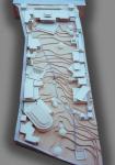 6. Unfolding dominant visual forms make an architectural statement at the roof level as one enters the site which is at a height of around 60’0” {20 mts.} above the lowest point. The visual imagery is a top down approach with the built spaces arranged in stepped sequences, generating a campus with buildings growing from, out of and sinking into the terrain all the while relating powerful to the dictums of the site.