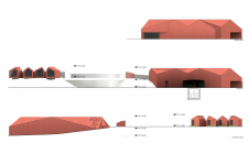 The buildings are conceived as a constellation of distinct volumes, gently stepping across the landscape and partially embedded within the terrain. This strategy reduces visual impact, enhances thermal performance, and establishes a continuous dialogue between architecture and ground. Sloped roofs and faceted walls reinterpret familiar roof typologies, transforming them into sculptural elements that respond to light, shadow, and topography.