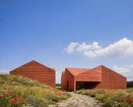 Materiality is deliberately restrained. Monolithic, earth-toned surfaces emphasize mass and continuity, allowing the buildings to read as carved objects within the landscape. Carefully positioned openings—both recessed and perforated—mediate between interior and exterior, framing views while controlling light and privacy.